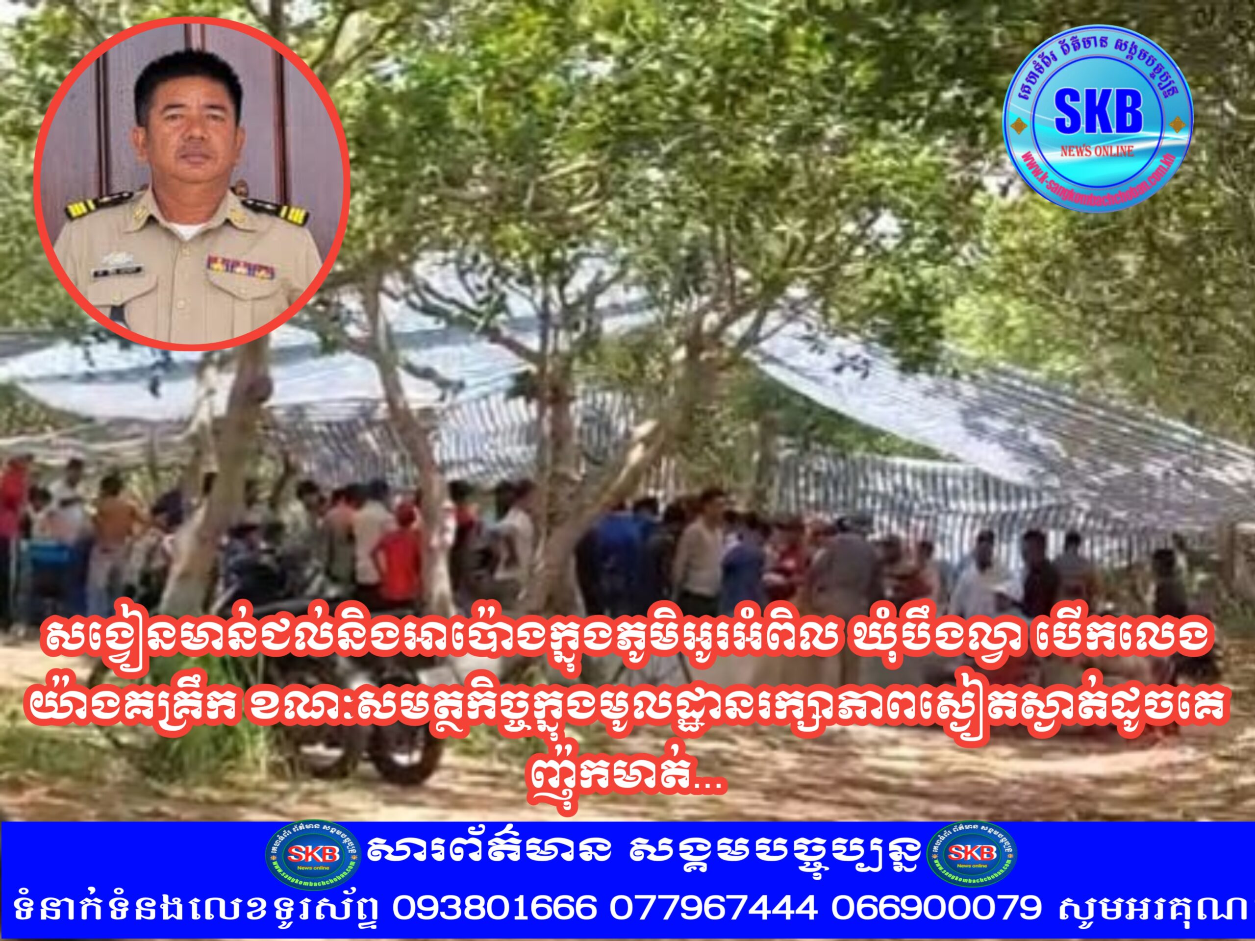 ខេត្តកំពង់ធំ ៖ ទីតាំងស្វៀនជល់មាន់ និងអាប៉ោង ខ្នាតយក្សលំដាប់ VIP មួយកន្លែងដែលស្ថិតនៅភូមិអូរអំពិល ឃុំបឹងល្វា ស្រុកសន្ទុក ខេត្តកំពង់ធំ បានបើកលេងយ៉ាងពេញបន្ទុកដោយគ្មានខ្លាច ញញើតនិងច្បាប់អ្វីបន្តិចសោះឡើយ បើទោះបីជាមានបទបញ្ជារដ៏មុឹងម៉ាត់របស់ប្រមុខរាជរដ្ឋាភិបាល ពិសេស សម្តេចធិបតី ហ៊ុន ម៉ាណែត នាយករដ្ឋមន្ត្រីនៃកម្ពុជា បានអោយអភិបាលរាជធានីខេត្តធ្វើការទប់ស្កាត់និងបង្ក្រាបរាល់ល្បែងសុីសងគ្រប់ប្រភេទដែលមានក្នុងដែនសមត្ថកិច្ចរបស់ខ្លួនគ្រប់គ្រង។តាមប្រភពបានអោយដឹងថា សង្វៀនជល់មាន់ នឹងអាប៉ោងនៅចំណុចទីតាំងខាងលើនេះ បានប្រមូលគៀងគរក្រុមអ្នកញៀនល្បែងឲ្យចូលលេងភ្លូកទឹក ភ្លូកដី ចាក់ភ្នាល់លុយរាប់លានរៀល ប៉ុន្តែទោះជាយ៉ាងនេះក្តី គេសង្កេតឃើញថា អាជ្ញាធរ សមត្ថកិច្ចមន្ត្រីជំនាញពាក់ព័ន្ធ រក្សាភាពស្ងាត់ស្ងៀមយ៉ាងត្រជាក់ចិត្ត។បើយោងតាមប្រជាពលរដ្ឋ នៅតំបន់នោះបានអោយដឹងថា ពួកគាត់ហាក់អស់សង្ឃឹមលើលោកមេប៉ុស្តិ៍ នឹងលោកអធិការស្រុកសន្ទុក បើវង់ល្បែងគគ្រឹកគគ្រេងពេញមូលដ្ឋានអស់លោកមិនអើពើបង្ក្រាបផង ថាតើភូមិឃុំអាចមានសុវត្ថិភាពបានមកពីណាទៅ? នៅរសៀលថ្ងៃទី០៨ ខែមិថុនា ឆ្នាំ២០២៥ ក្រុមការងារបានទំនងទៅលោក សាមុត នាយប៉ុស្តិ៍នគរបាលរដ្ឋបាលឃុំបឹងល្វា ដើម្បីរាយការណ៍តាមរយៈលេខ 0979805986 ប៉ុនខលចូលច្រើនដងតែពុំមានអ្នកលើក។ចំណែកលោក ម៉ៅ ចាន់ធី អធិការស្រុកសន្ទុក ក្រុមការងារក៏មិនអាចទាក់ទងបានដែរ ដោយខលតាមលេខ 0978815858 ខលមិនចូល។ជុំវិញករណីខាងលើនេះ ប្រជាពលរដ្ឋទទូចស្នើរសុំដល់ ឧត្តមសេនីយ៍ទោ ហេង សុផល ស្នងការដ្ឋាននគរបាលខេត្តកំពង់ធំ មេត្តាចាត់កំម្លាំងក្រោមឱវាទចុះត្រួតពិនិត្យវង់ល្បែងសុីសងនៅចំណុចទីតាំងខាងលើនេះផងទាន ដើម្បីរក្សាសេចក្ដីសុខ សុវត្ថិភាពជូនដល់ប្រជាពលរដ្ឋ និងដើម្បីភូមិ ឃុំមានសុវត្ថិភាពទាំង០៧ចំនុច តាមគោលនយោបាយរបស់រាជរដ្ឋាភិបាលកម្ពុជា សូមអរគុណ៕