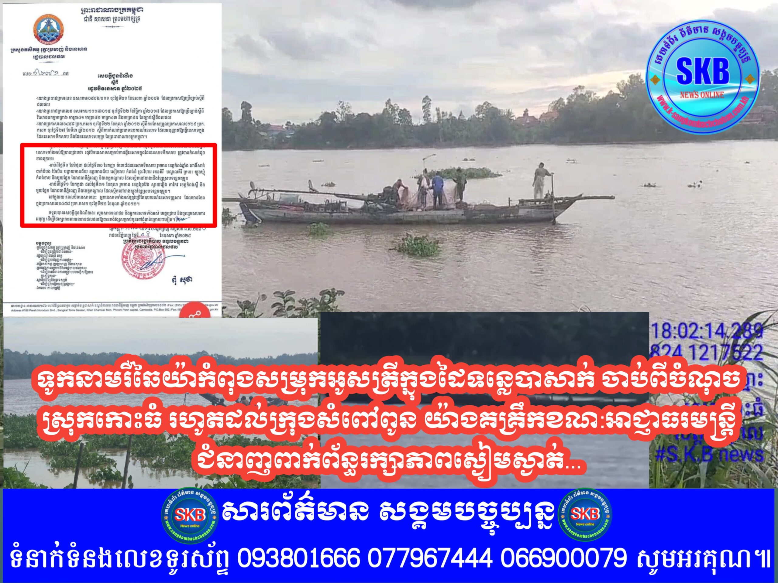 ខេត្តកណ្តាល ÷ ប្រិយមិត្តជាទីរាប់អាន! រដូវបិទនេសាទបានឈានចូលមកដល់ ប៉ុន្តែប្លែកអ្វីក៏ទូកនាម រឺឆៃយ៉ា របស់ជនជាតិឥស្លាមរាប់សិបគ្រឿង កំពុងសម្រុកអូសយកផលត្រីនៅក្នុងដៃទន្លេបាសាក់យ៉ាងគ្រឹក ដែលជាហេតុធ្វើឲ្យប៉ះពាល់ជាខ្លាំងដល់មច្ឆាជាតិដែលកំពុងតែពងកូន ចំណែកអាជ្ញាធរមន្ត្រីជំនាញពាក់ព័ន្ធ ពិសេសជំនាញជលផលរក្សាភាពស្ងៀមស្ងាត់ដូចគេញ៉ុកមាត់។យោងតាមសេចក្តីជូនដំណឹង ស្តីពីរដូវបិទនេសាទឆ្នាំ២០២៥ របស់ក្រសួងកសិកម្មរុក្ខាប្រមាញ់និងនេសាទ លេខ១២៧១ ចុះថ្ងៃទី០៣ ខែឧសភា ឆ្នាំ២០២៥ រដ្ឋបាលជលផល នៃក្រសួងកសិកម្មរុក្ខាប្រមាញ់និងនេសាទ សូមជូនដំណឹងដល់សាធារណជននិងអ្នកនេសាទទាំងអស់ឲ្យបានជ្រាបថា រដូវបិទនេសាទសម្រាប់ការធ្វើនេសាទក្នុងដែននេសាទទឹកសាបត្រូវបានកំណត់ដូចខាងក្រោម:- ចាប់ពីថ្ងៃទី 1 ខែកក្កដា ដល់ថ្ងៃទី 31 ខែតុលា រួមមាន ខេត្តព្រៃវែង ស្វាយរៀង តាកែវ កំពង់ស្ពឺ និងមួយផ្នែកនៃរាជធានីភ្នំពេញនិងខេត្តកណ្ដាល ដែលស្ថិតនៅខាងត្បូងខ្សែស្របទន្លេចតុមុខ។- នៅក្នុងរយៈពេលបិទនេសាទនេះ អ្នកនេសាទទាំងអស់ត្រូវប្រើតែឧបករណ៍នេសាទគ្រួសារ ដែលមានចែងក្នុងប្រកាសលេខ ៤៥៨ ប្រក.កសក ចុះថ្ងៃទី២២ ខែតុលា ឆ្នាំ២០១២។ទទួលបានសេចក្តីជូនដំណឹងនេះ សូមសាធារណជន និងអ្នកនេសាទទាំងអស់មេត្តាជ្រាប ហ្នឹងចូលរួមសហការអនុវត្ត ដើម្បីថែរក្សាការពារធនធានជលផលឲ្យបានគង់វង្សសម្រាប់កូនចៅជំនាន់ក្រោយៗទៀត។ប៉ុន្តែបើទោះបីជាយ៉ាងនេះក្តីគេសង្កេតឃើញថា ទូកនាមឬឆៃយ៉ា ប្រមាណជាង១០ គ្រឿង របស់ជនជាតិឥស្លាម ដែលរស់នៅក្នុងស្រុកកោះធំ នៅតែបន្តការនេសាទ ដោយប្រើម៉ាស៊ីនធំៗ អូសចាប់ពីស្រុកកោះធំ រហូតមកដល់ក្រុងសំពៅពូន យ៉ាងអាណាធិបតេយ្យទាំងយប់ទាំងថ្ងៃ ដោយពុំឃើញមានអាជ្ញាធរមិនត្រូវជំនាញពាក់ព័ន្ធ ពិសេសជំនាញជលផល ចុះធ្វើការទប់ស្កាត់និងហាមឃាត់នោះឡើយ ដែលទង្វើនេះហាក់ផ្ទុយទៅហ្នឹងសេចក្តីជូនដំណឹងរបស់ក្រសួងកសិកម្មរុក្ខាប្រមាញ់និងនេសាទទៅវិញ។ក្នុងនោះដែរប្រជាពលរដ្ឋតើរស់នៅតាមបណ្ដោយមាត់ទន្លេ បានលើកឡើងថា ការអូសត្រីដោយប្រើម៉ាស៊ីនធំៗ របស់ជនជាតិឥស្លាមខាងលើនេះ បានបង្កផលប៉ះពាល់ជាខ្លាំងដល់ពួកគាត់ ដូចជាដាច់ ម៉ង សន្ទូច ពិសេសធ្វើឲ្យបាក់ដាច់ទុយោទឹក ដែលពួកគាត់បានបូមទឹកចេញពីទន្លេដើម្បីប្រើប្រាស់ប្រចាំថ្ងៃ និងប៉ះពាល់ជាខ្លាំងដល់មច្ឆាជាតិដែលកំពុងតែពងកូន។ទោះជាយ៉ាងនេះក្តី ប្រជាពលរដ្ឋទទូចស្នើសុំទៅដល់អាជ្ញាធរមានសមត្ថកិច្ច មន្ត្រីជំនាញពាក់ព័ន្ធ ពិសេសជំនាញជលផល ទាំងក្នុងស្រុកកោះធំ និងក្រុងសំពៅពូន ខេត្តកណ្តាល មេត្តាទានមានវិធានការទប់ស្កាត់និងបង្ក្រាប រាល់សកម្មភាពការអូសអួន ដែលហៅថាឆៃយ៉ា ឬទូកនាម របស់ជនជាតិឥស្លាមខាងលើ ដោយក្