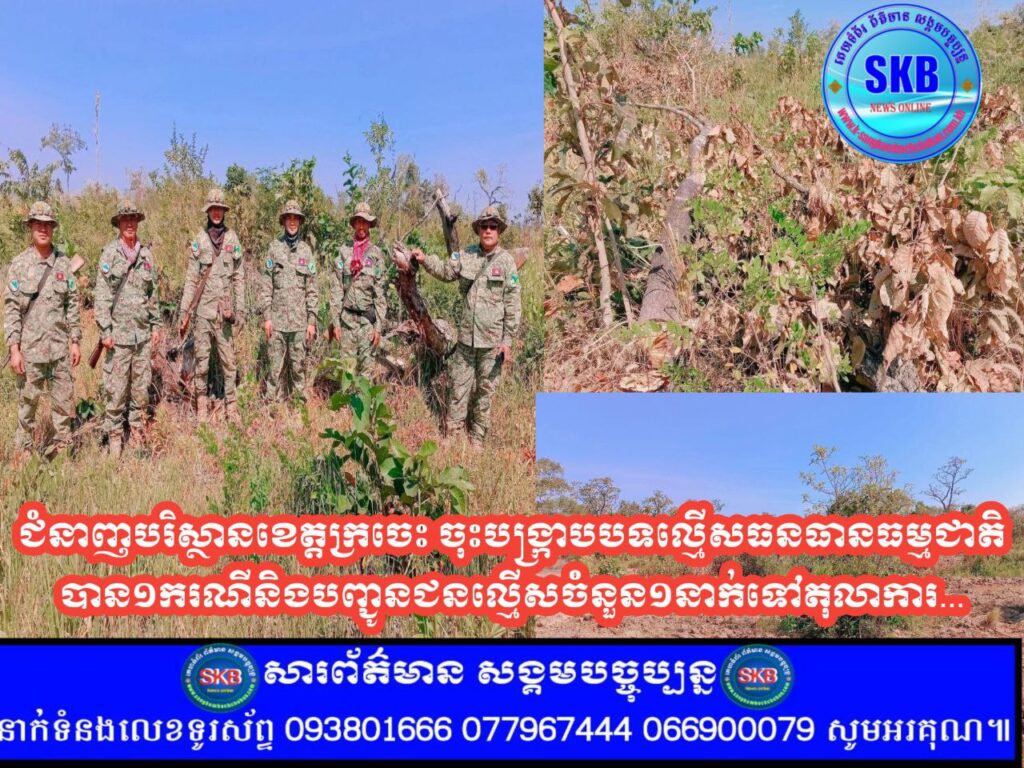 ខេត្តក្រចេះ ÷ នៅព្រឹកថ្ងៃទី ០៩ ខែមករា ឆ្នាំ២០២៦ កម្លាំងមន្រ្តីឧទ្យាននុរក្សនៃដែនជម្រកសត្វព្រៃសំបូរ នៃមន្ទីរបរិស្ថានខេត្តក្រចេះ ដឹកនាំបញ្ជាផ្ទាល់ដោយលោក គា ប៊ូ ប្រធានមន្ទីរ និងមានការចូលរួមពីលោក ហាស់ សុខរ៉ុន អនុប្រធានមន្ទីរទទួលបន្ទុក លោក ញ៉ែម វិសាល នាយកដែន និងលោក មឿង ភក្ត្រា ប្រធានស្នាក់ការដែន បានចុះបង្រ្កាប បទល្មើសធនធានធម្មជាតិ កាប់ ផ្តួល រំលំ រុករានដីព្រៃ បំផ្លាញព្រៃឈើ ធ្វើជាកម្មសិទ្ធិខុសច្បាប់ នៅក្នុងដែនជម្រកសត្វព្រៃសំបូរ ភូមិសាស្រ្តឃុំកោះខ្ញែរ ស្រុកសំបូរ ខេត្ត ក្រចេះ។ ក្នុងប្រតិបត្តិការចុះបង្ក្រាប ក្រុមការងារបានឃាត់បានជនសង្ស័យ ១នាក់ ព្រមទាំងរឹបអូសបានវត្ថុតាងរួមមាន ម៉ូតូចំនួន ០១គ្រឿង ទូរសព្ទដៃ០១គ្រឿង។ បច្ចុប្បន្ន ជនសង្ស័យ និងវត្ថុតាងឃាត់ខ្លួនបណ្តោះអាសន្ន នៅខេត្ត ក្រចេះ ដើម្បីចាត់ការបន្តតាមនីតិវិធី។ ការប្រព្រឹត្តសកម្មភាពខាងលើ គឺផ្ទុយនឹងមាត្រា៨៥១ នៃក្រមបរិស្ថាននិងធនធានធម្មជាតិ រួមទាំងបទដ្ឋានគតិយុត្តមួយចំនួនទៀតចូលធរមាននៅកម្ពុជា។សូមបញ្ជាក់ថា ប្រតិបត្តិការចុះបង្កាបបានបទល្មើសធនធានធម្មជាតិនេះ គឺមានការសម្របសម្រួលពី ព្រះរាជអាជ្ញាអមសាលាដំបូងខេត្តក្រចេះ និងមានការដឹកនាំចង្អុលបង្ហាញគាំទ្រពីគណៈបញ្ជាការកងឯកភាពខេត្ត និងលេខាដ្ឋាននៃគណ:កម្មការទប់ស្កាត់និងបង្រ្កាបបទល្មើសធនធានធម្មជាតិខេត្តក្រចេះ និងការអនុវត្តវិធានការគ្រប់គ្រងធនធានធម្មជាតិ ដើម្បីបង្កើនគម្របបៃតងនៅកម្ពូជា ស្របតាមយុទ្ធសាស្រ្តចក្រាវិស័យបរិស្ថាន៕