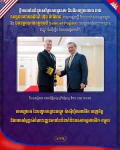 ក្នុងឱកាសនៃជំនួបនេះ, ឯកឧត្តម នាយឧត្តមនាវី Samuel Paparo បានថ្លែងអំណរគុណ និងសម្តែងនូវក្តីសោមនស្សរីករាយដែលបានជួបសម្តេចបវរធិបតីជាថ្មីម្តងទៀត ក្នុងដំណើរបំពេញទស្សនកិច្ចលើកទី២ នៅកម្ពុជា។ ឯកឧត្តមបានសម្តែងការពេញចិត្ត និងវាយតម្លៃខ្ពស់ចំពោះវឌ្ឍនភាពនៃទំនាក់ទំនងសហរដ្ឋអាម៉េរិក-កម្ពុជា ជាពិសេសកិច្ចសហប្រតិបត្តិការលើវិស័យការពារជាតិ។ ជាមួយគ្នានេះ, ឯកឧត្តមបានថ្លែងអំណរគុណចំពោះរាជរដ្ឋាភិបាលកម្ពុជា ដែលបានអនុញ្ញាតឱ្យនាវាកងទ័ពជើងទឹកសហរដ្ឋអាម៉េរិកចូលចតនៅមូលដ្ឋានសមុទ្ររាម ដែលនេះជាសក្ខីភាពឆ្លុះបញ្ចាំងពីការពង្រឹងទំនាក់ទំនងយោធាកាន់តែស៊ីជម្រៅរវាងប្រទេសទាំងពីរ។