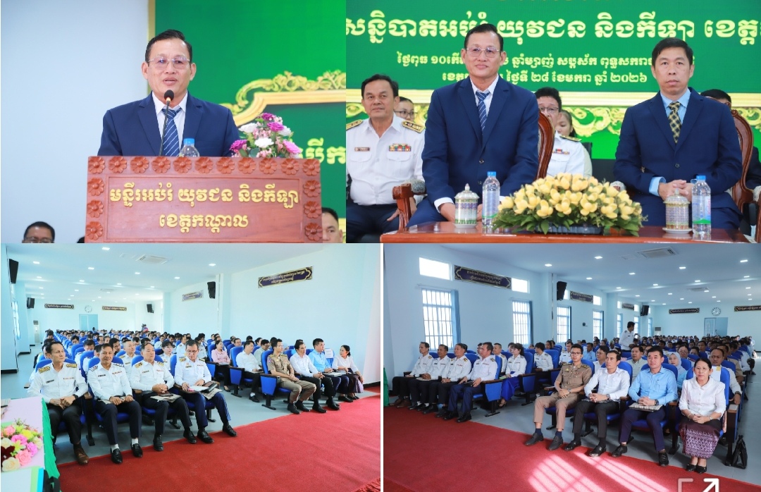 ខេត្តកណ្តាល៖ ឯកឧត្តម ហូ សំបូរ អនុរដ្ឋលេខាធិការក្រសួងអប់រំ យុវជន និងកីឡា និងឯកឧត្តម ប៊ុន ផេង អភិបាលរងខេត្តកណ្ដាល នៅព្រឹកថ្ងៃទី២៨ ខែមករា ឆ្នាំ២០២៦នេះ បានអញ្ជើញជាគណៈអធិបតី ក្នុងពិធីបើកសន្និបាតបូកសរុបលទ្ធផលការងារ ឆ្នាំសិក្សា ២០២៤-២០២៥ និងលើកទិសដៅសិក្សា២០២៥-២០២៦ របស់មន្ទីរអប់រំ យុវជន និងកីឡាខេត្តកណ្តាល ដោយមានការអញ្ជើញចូលរួមពីបណ្ដាមន្ទីរអង្គភាពជុំវិញខេត្ត អាជ្ញាធរក្រុង-ស្រុក ការិយាល័យអប់រំចំណុះមន្ទីរ ព្រមទាំងលោក-លោកស្រីនាយកនាយយិកាសាលារៀនជាច្រើនរូបទៀត។