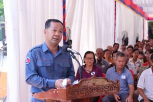 ឯកឧត្តមអភិបាលខេត្ត បានថ្លែងនូវការអបអរសាទរជាមួយបងប្អូនប្រជាពលរដ្ឋទាំងអស់ ដែលទទួលបាននូវវិញ្ញាបនបត្រសម្គាល់ម្ចាស់អចលនវត្ថុ នាឱកាសនេះ និងសូមស្នើដល់បងប្អូនត្រូវខិតខំយកចិត្តទុកដាក់ថែរក្សាឯកសារនេះឲ្យបានត្រឹមត្រូវ ប្រើប្រាស់បានចំគោលដៅ សម្រាប់ប្រើប្រាស់ជាប្រយោជន៍ដើម្បីគាំទ្រដល់ការកសាងជីវភាពគ្រួសារឲ្យបានកាន់តែល្អប្រសើរឡើង ។