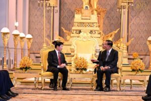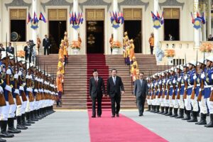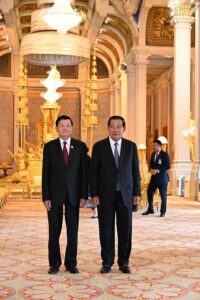សម្ដេចអគ្គមហាសេនាបតីតេជោ ហ៊ុន សែន ប្រធានព្រឹទ្ធសភានៃព្រះរាជាណាចក្រកម្ពុជា និងជាប្រធានគណបក្សប្រជាជនកម្ពុជា នាព្រឹកថ្ងៃសៅរ៍ ៥រោច ខែមាឃ ឆ្នាំម្សាញ់ សប្តស័ក ពុទ្ធសករាជ ២៥៦៩ ត្រូវនឹងថ្ងៃទី៧ ខែកុម្ភៈ ឆ្នាំ២០២៦នេះ បានអញ្ជើញជាព្រះរាជតំណាងដ៏ខ្ពង់ខ្ពស់បំផុត របស់ព្រះករុណាព្រះបាទសម្ដេចព្រះបរមនាថ នរោត្តម សីហមុនី ព្រះមហាក្សត្រនៃព្រះរាជាណាចក្រកម្ពុជា ទទួលបដិសណ្ឋារកិច្ចស្វាគមន៍ ឯកឧត្តម ថងលុន ស៊ីសុលីត(Thongloun Sisoulith) អគ្គលេខាធិការបក្សប្រជាជនបដិវត្តន៍ឡាវ និងជាប្រធានរដ្ឋឡាវ ក្នុងឱកាសដែល ឯកឧត្តម និងគណៈប្រតិភូអញ្ជើញបំពេញទស្សនកិច្ចផ្លូវរដ្ឋនៅកម្ពុជារយៈពេលពីរថ្ងៃ។
