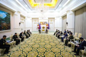 សម្ដេចមហាបវរធិបតី បានសម្ដែងនូវការស្វាគមន៍យ៉ាងកក់ក្ដៅចំពោះ លោកអគ្គមេបញ្ជាការ និងគណៈប្រតិភូ ដែលបានអញ្ជើញមកបំពេញទស្សនកិច្ចនៅកម្ពុជា និងរីករាយ ដែលបានជួបជាមួយអគ្គមេបញ្ជាការជាថ្មីម្តងទៀត។ សម្ដេចមហាបវរធិបតី ក៏បានសម្ដែងនូវការពេញចិត្ត និងវាយតម្លៃខ្ពស់ចំពោះវឌ្ឍនភាពនៃទំនាក់ទំនង និងកិច្ចសហប្រតិបត្តិការក្នុងវិស័យការពារជាតិ នៃប្រទេសទាំងពីរ ជាពិសេសកិច្ចសហប្រតិបត្តិការ ក្នុងការចែករំលែកបទពិសោធន៍ និងការកសាងសមត្ថភាពរវាងកងទ័ពនៃប្រទេសទាំងពីរ។