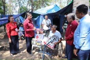 ស្ថានការណ៍នៅព្រំដែនកម្ពុជា-ថៃ នៅតែបណ្តាលឱ្យប្រជាជនស៊ីវិលកម្ពុជាជាង១ម៉ឺន៥ពាន់គ្រួសារទៀត មិនទាន់អាចវិលត្រឡប់ទៅលំនៅដ្ឋានវិញ ក្នុងនោះមានប្រជាជនភៀសសឹកជាង ៣ពាន់គ្រួសារ ក្នុងខេត្តបន្ទាយមានជ័យ នៅបន្តស្នាក់នៅបណ្តោះអាសន្នតាមមណ្ឌលសុវត្ថិភាព ហើយបន្ថែមនូវការលំបាកទ្វេដងដោយសារទឹកភ្លៀងកាលពីពេលថ្មីៗនេះទៀតផង។ដោយក្តីអាណិតអាសូរ និងមើលឃើញពីទុក្ខលំបាកខាងលើនេះ, សម្តេចកិត្តិព្រឹទ្ធបណ្ឌិត ប៊ុន រ៉ានី ហ៊ុនសែន ប្រធានកាកបាទក្រហមកម្ពុជា នៅថ្ងៃទី៣ ខែមីនា ឆ្នាំ២០២៦នេះ បានចាត់ឱ្យឯកឧត្តម យូ ឡាណា អគ្គលេខាធិការរងទី២ កាកបាទក្រហមកម្ពុជា និងសហការី រួមជាមួយសាខាកាកបាទក្រហមកម្ពុជា ខេត្តបន្ទាយមានជ័យ ចុះសួរសុខទុក្ខ និងនាំយកអំណោយមនុស្សធម៌ជាបន្ទាន់ចែកជូនផ្ទាល់ដៃដល់ប្រជាជនភៀសសឹកចំនួន
