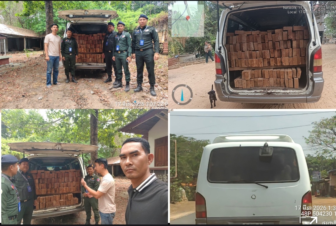 ផ្សាយចេញពីក្រុងសំពៅពូន ខេត្តកំពង់ធំ÷ រថយន្តសាំងយ៉ុងពណ៌ស ១គ្រឿង ពាក់ស្លាកលេខ ភ្នំពេញ 2AJ-6632 ផ្ទុកពេញដោយឈើ ត្រូវបានកងកម្លាំងរាជអាវុធហត្ថខេត្តកំពង់ធំ ចុះធ្វើការស្ទាក់ហត់ចង់បាន នៅចំណុចភូមិចុងពូត្រាវ ឃុំកំពង់ស្វាយ ស្រុកកំពង់ស្វាយ ខេត្តកំពង់ធំ កាលពីម៉ោង ២.២៣នាទី កាលពីថ្ងៃទី១៧ ខែមីនា ឆ្នាំ២០២៦ បន្ទាប់ពីទទួលបានសេចក្តីរាយការណ៍ពីលោក តាន់ គឹមសួរ ប្រធានសមាគមយុវជនស្រលាញ់ធម្មជាតិ និងក្រោមបទបញ្ជាឯកឧត្តម អេង ហុី អ្នកនាំពាក្យកងរាជអាវុធហត្ថលើផ្ទៃប្រទេស និងឧត្តមសេនីយ៍ត្រី មាស យ៉ត មេបញ្ជាការកងរាជអាវុធហត្ថខេត្តកំពង់ធំ។