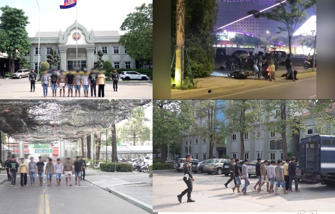 បានធ្វើសកម្មភាពវាយកាប់គ្នាទៅវិញទៅមកបណ្តាលអោយរងរបួសទាំងសងខាង នៅចំណុចមុខផ្សារទំនើបជីបម៉ុង២៧១ ភូមិព្រែកតាគង់១ សង្កាត់ចាក់អង្រែលើ ខណ្ឌមានជ័យ រាជធានីភ្នំពេញ។ ភ្លាមៗបន្ទាប់ពីទទួលបានព័ត៌មាន កម្លាំងអាវុធហត្ថរាជធានីភ្នំពេញ ក្នុងមូលដ្ឋានខណ្ឌមានជ័យ ចុះដល់កន្លែងកើតហេតុធ្វើការស្រាវជ្រាវជាបន្តបន្ទាប់ ឈានដល់ការឃាត់ខ្លួនក្មេងទំនើងទាំង០២ភាគីបានសរុបចំនួន ០៨នាក់ បញ្ជូនទៅការិយាល័យជំនាញ នៃ កងរាជអាវុធហត្ថរាជធានីភ្នំពេញ ដើម្បីចាត់ការបន្តតាមនីតិវិធី។ វត្ថុតាងចាប់យក ៖ ម៉ូតូ០១គ្រឿងម៉ាកហុងដា ស្កូពី ពណ៌ខ្មៅ ស៊េរីឆ្នាំ២០២៣ ពាក់ស្លាកលេខ ភ្នំពេញ 1KH-4857, បំពង់ទីបដែក ០១ដើម និងកាំបិតប៉័ងតោ ០១ដើម រួមនឹងសម្ភារៈមួយចំនួនទៀត។
